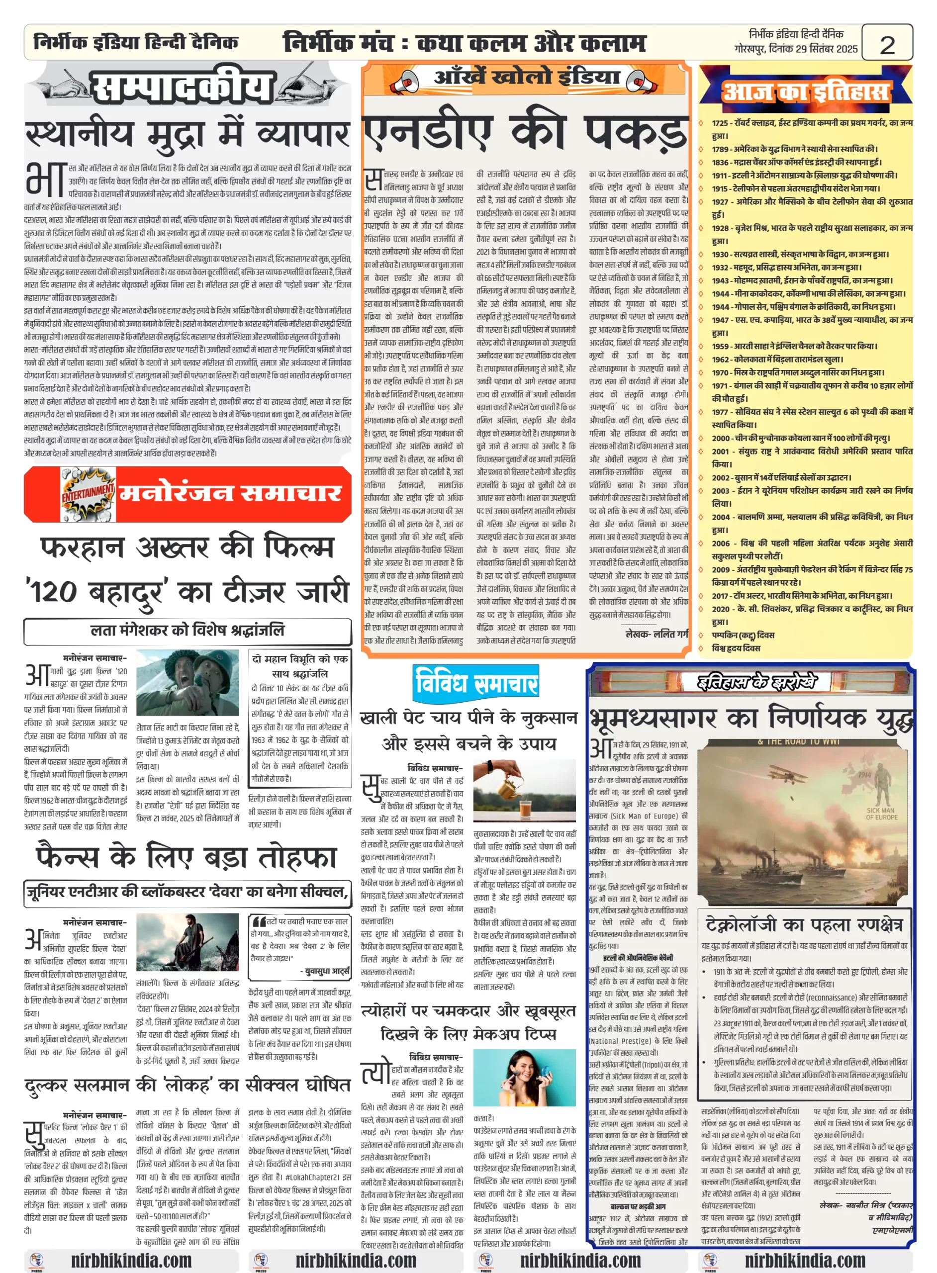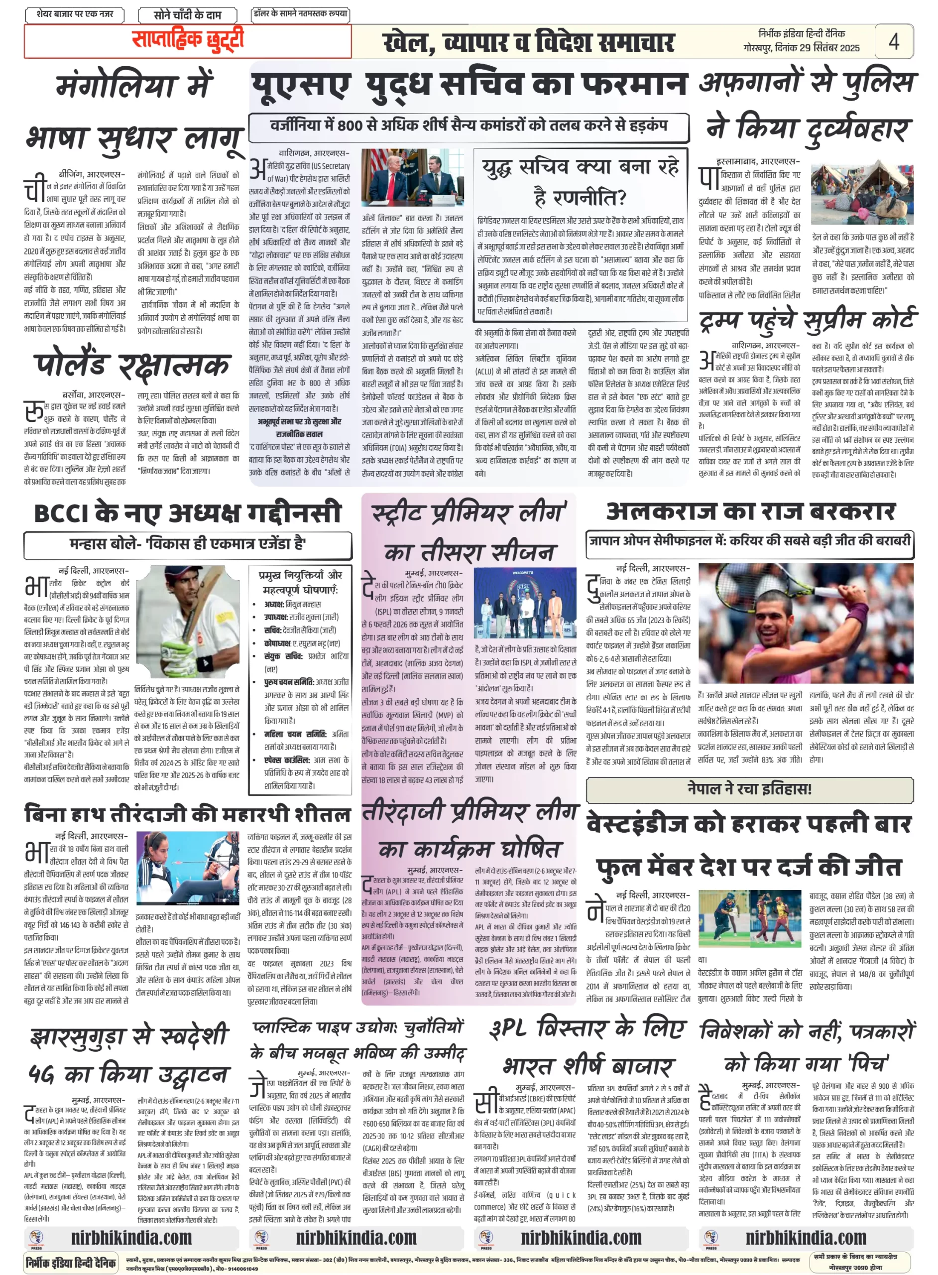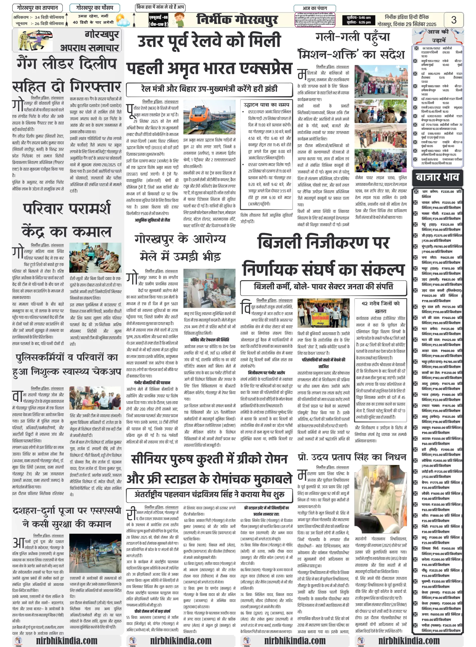 निर्भीक इंडिया गोरखपुर 29 सितम्बर 2025 ई-पेपर