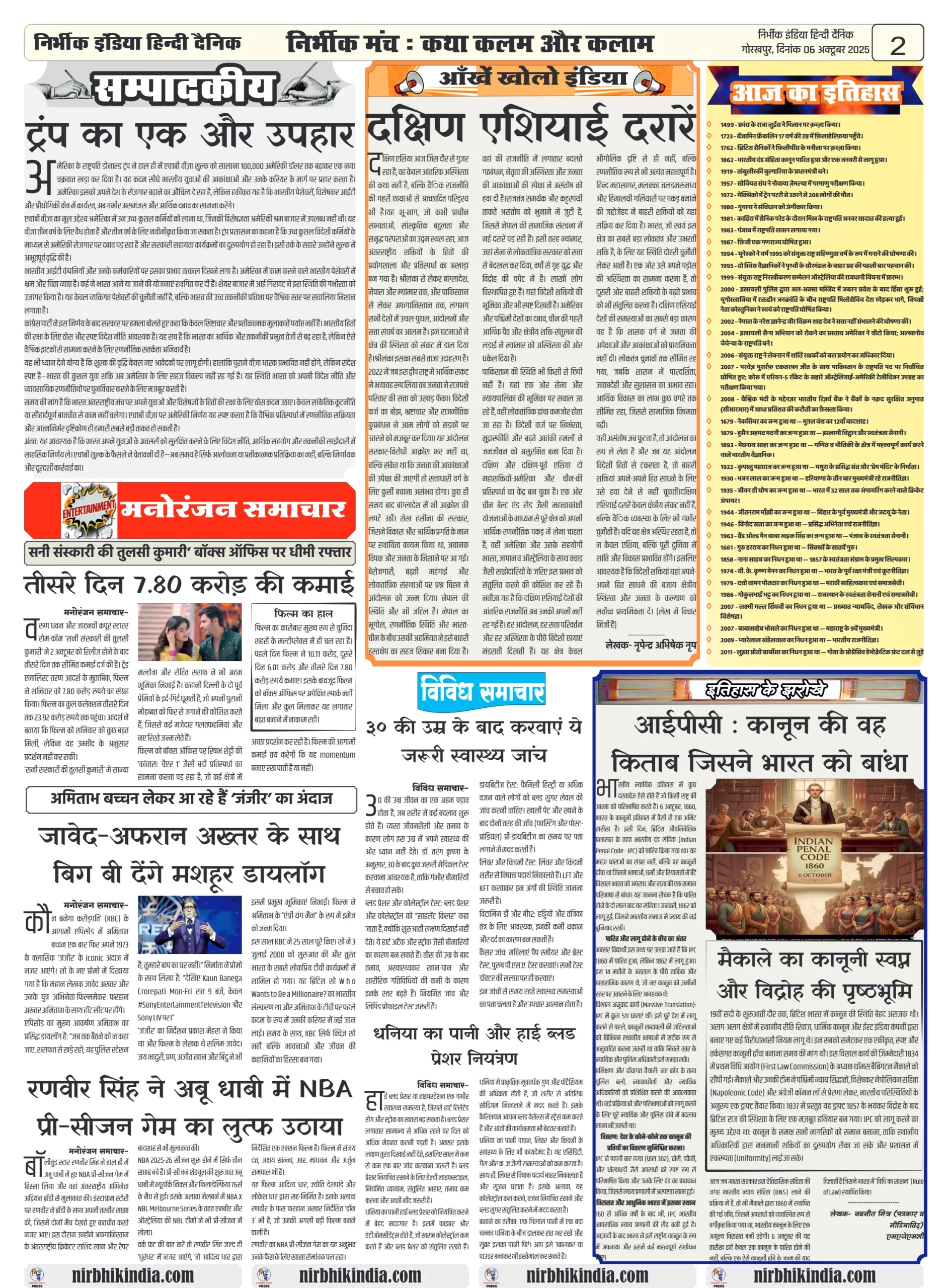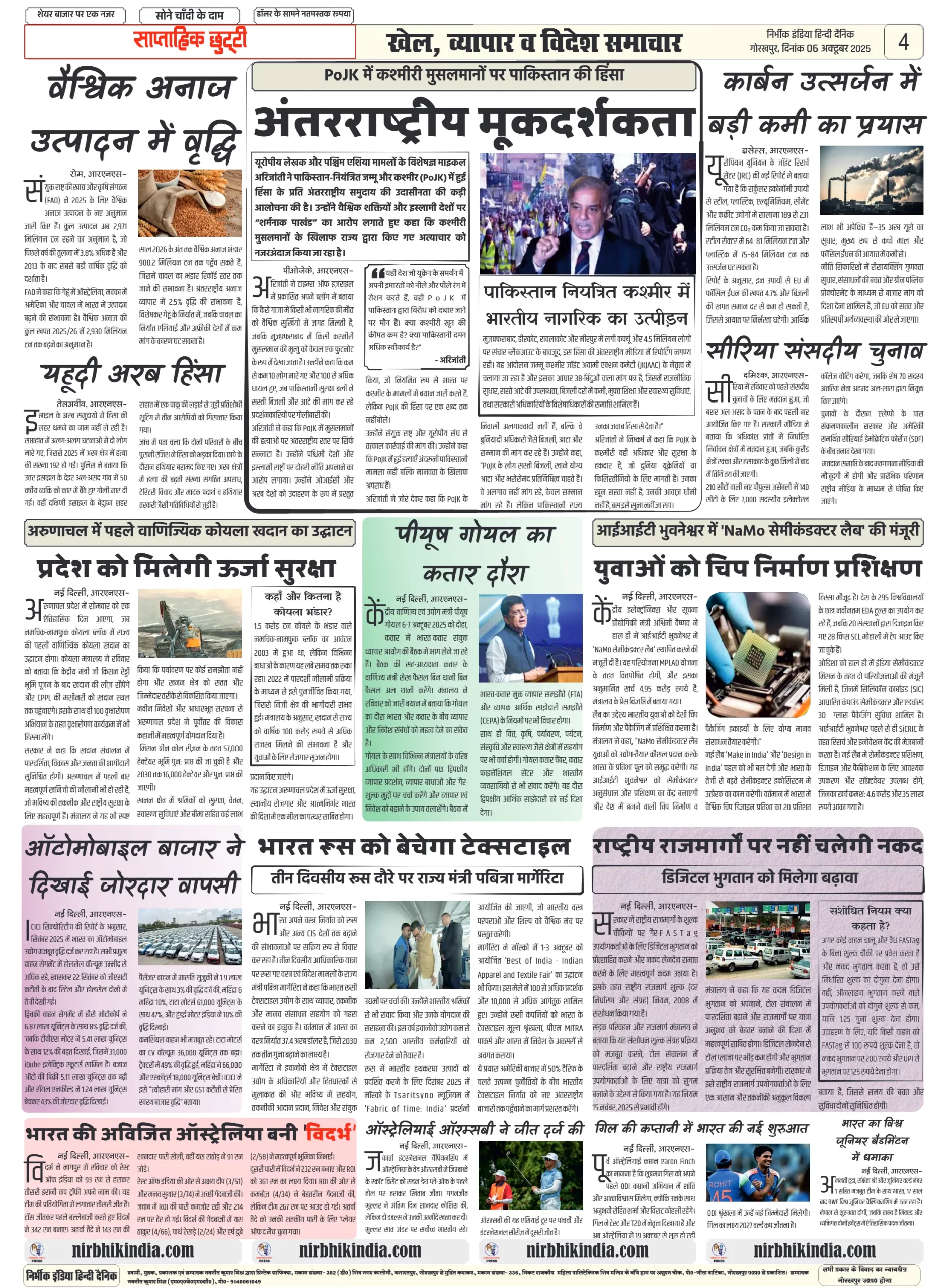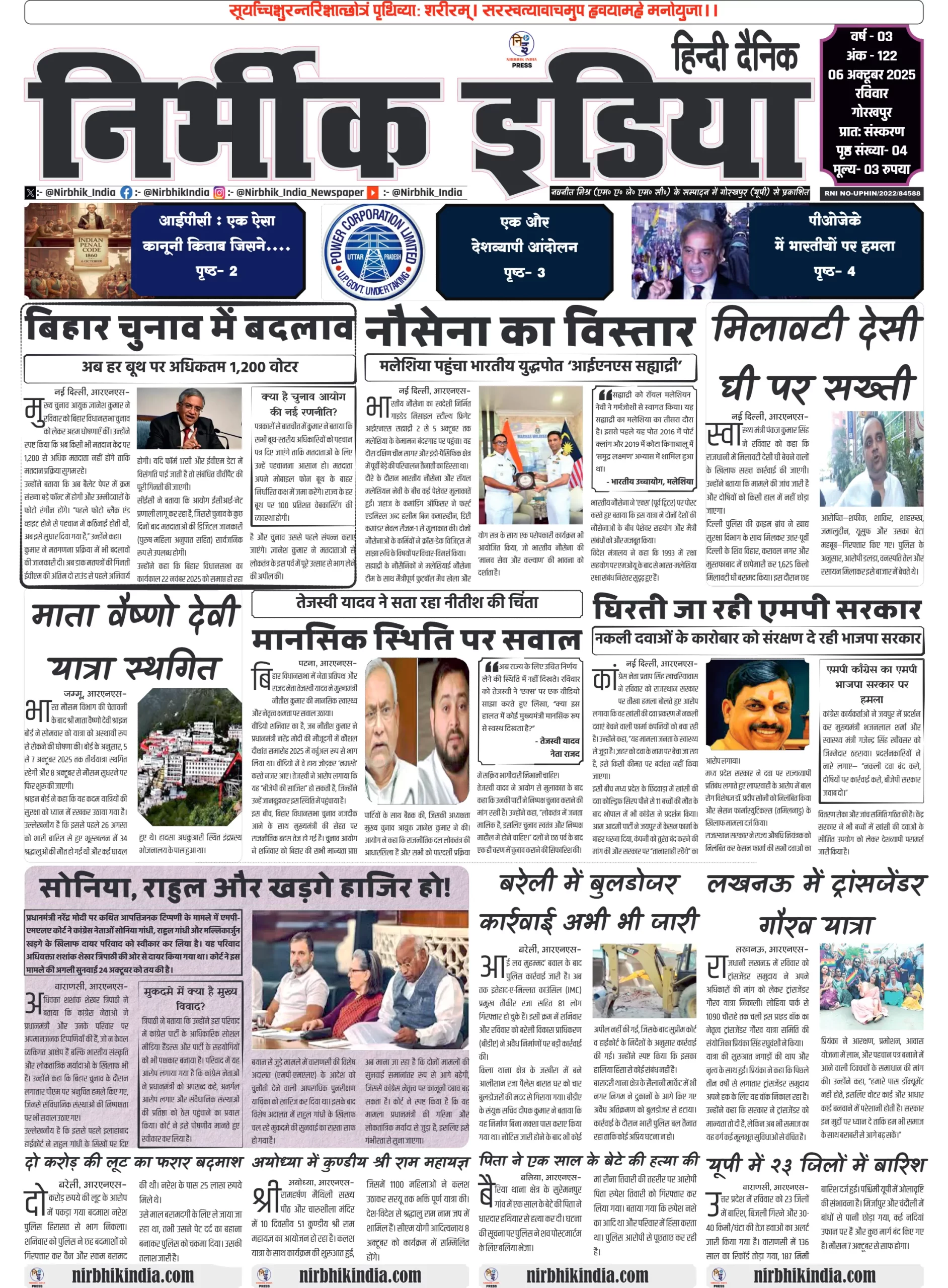 NIRBHIK INDIA GORAKHPUR NEWSPAPER 06 October 2025