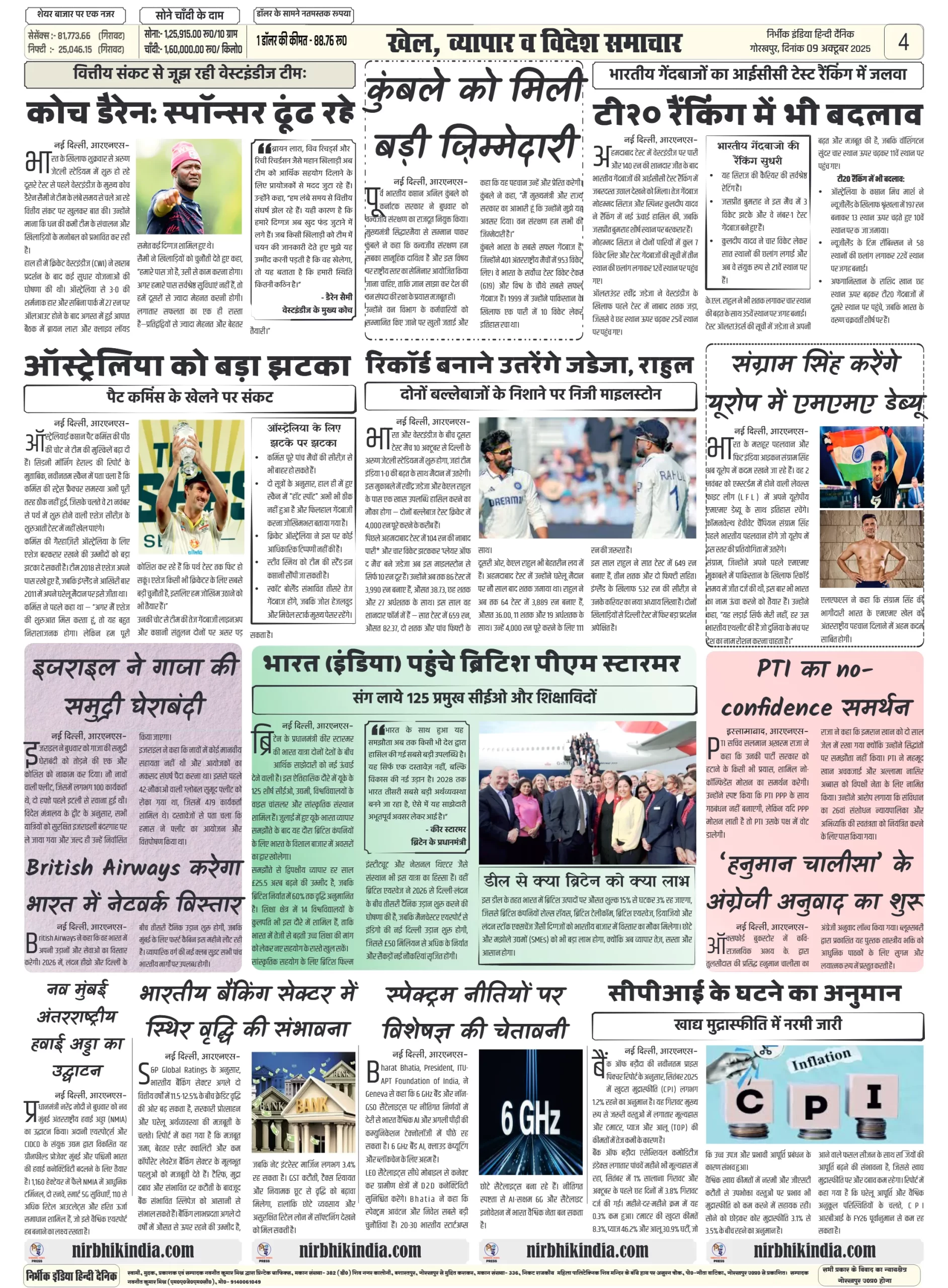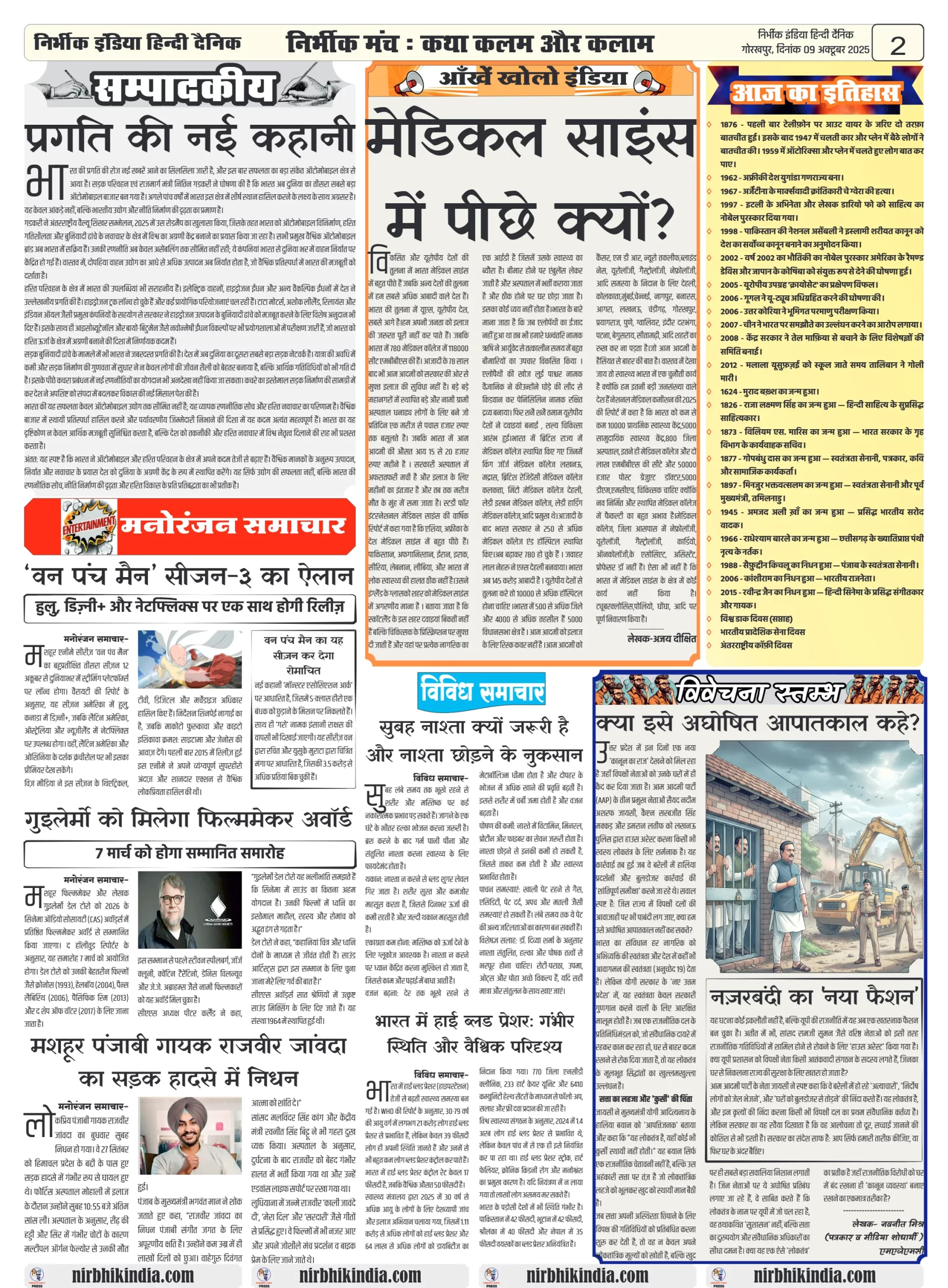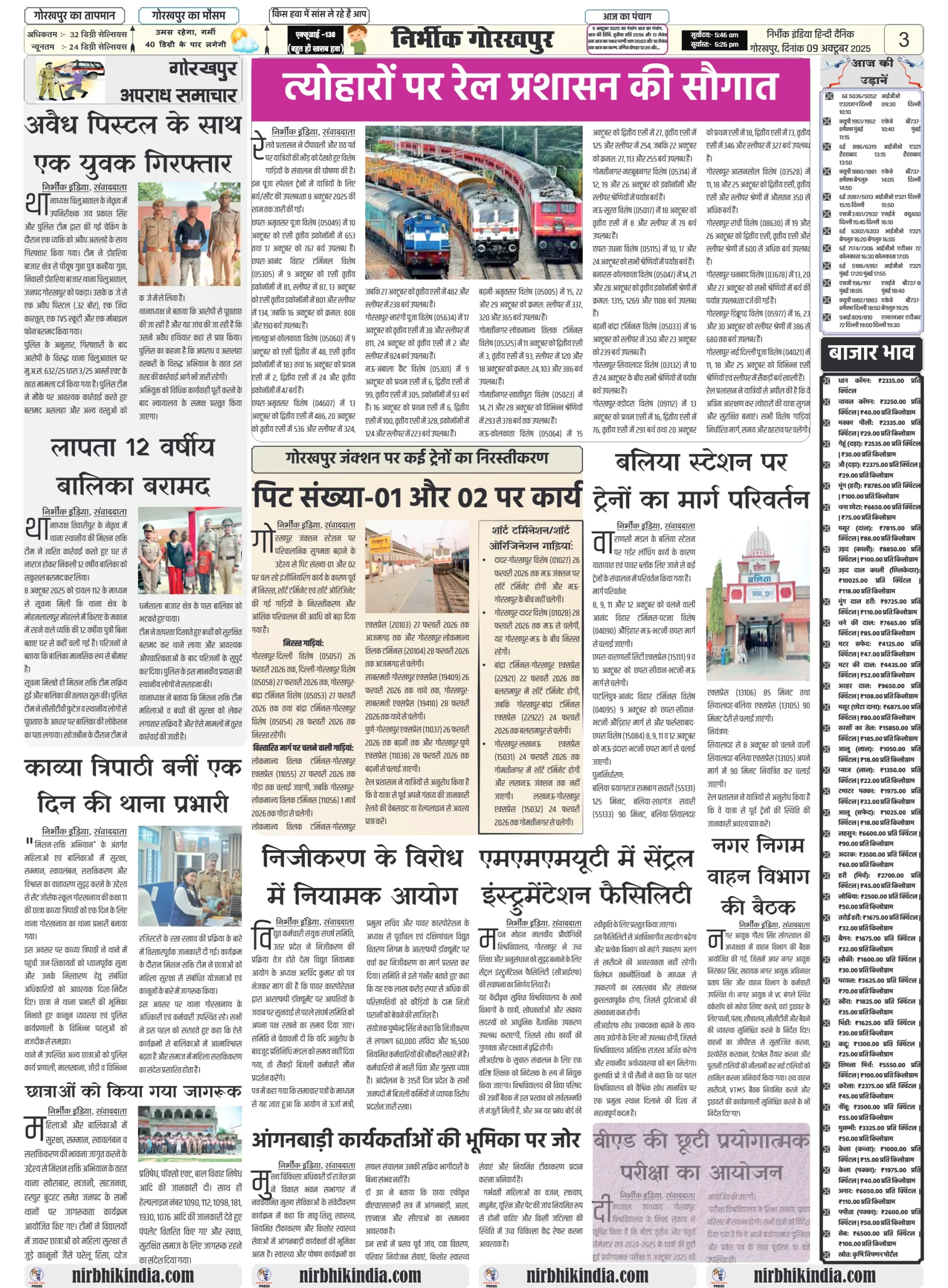 NIRBHIK INDIA GORAKHPUR NEWSPAPER 09 October 2025