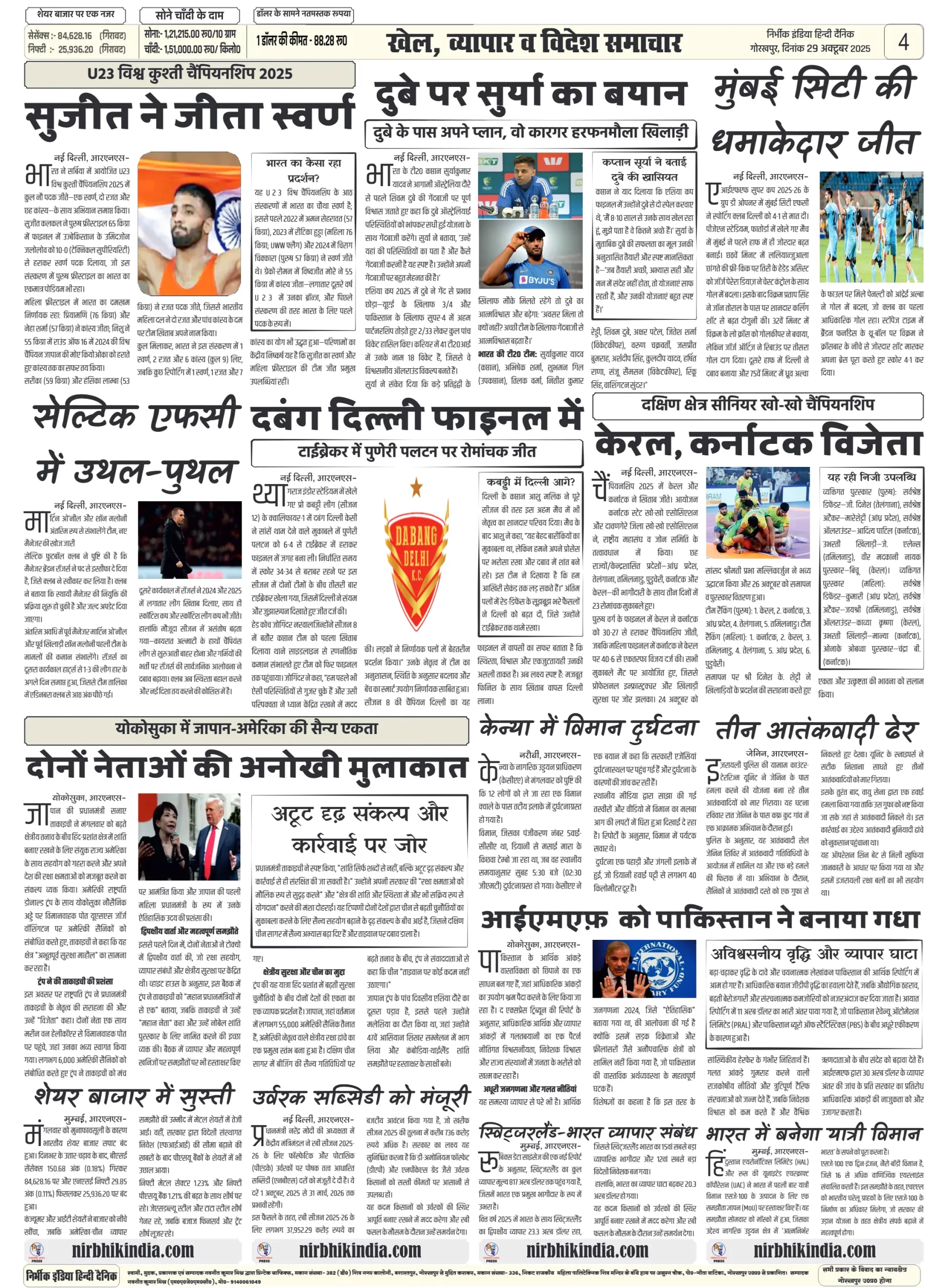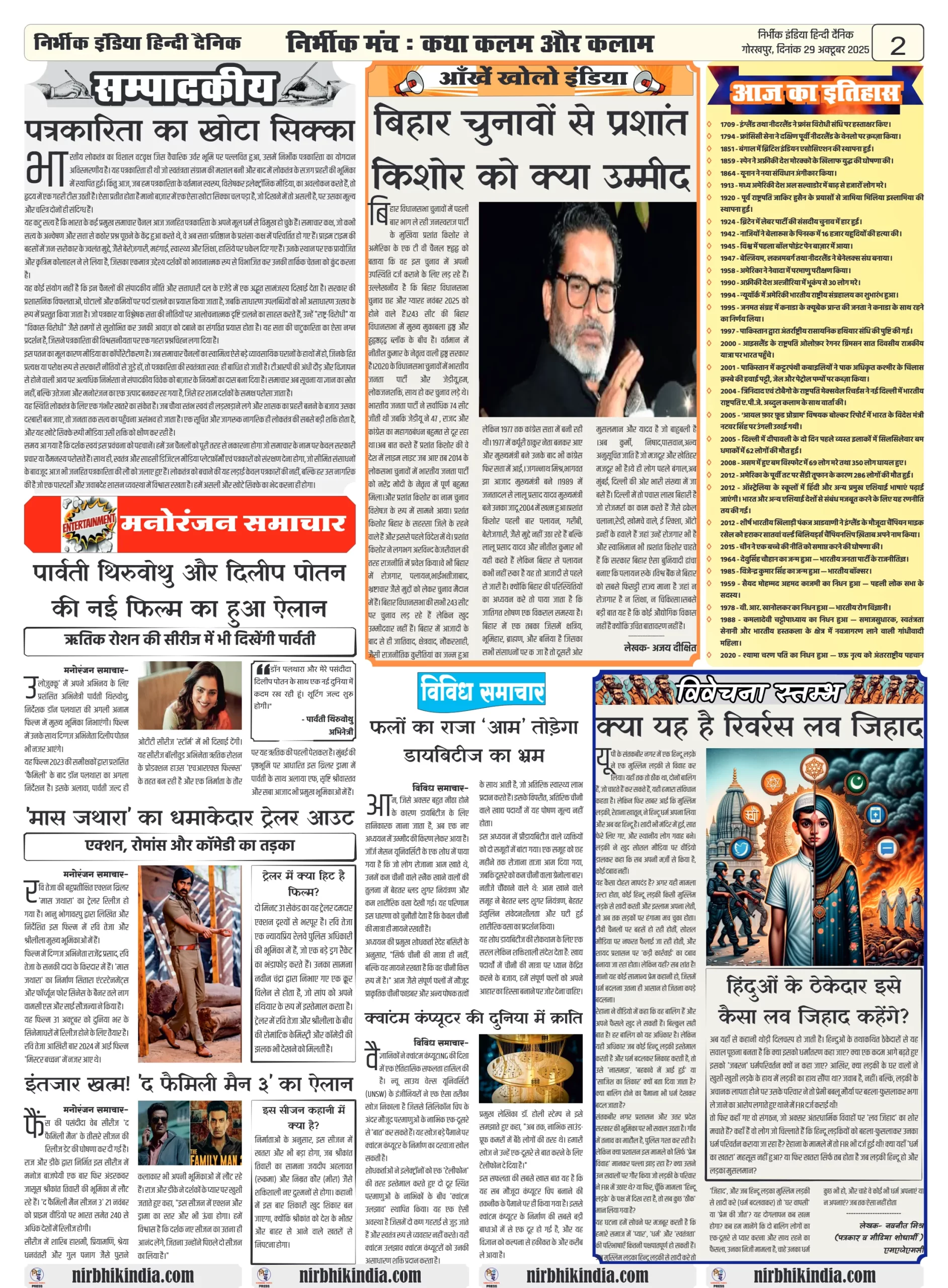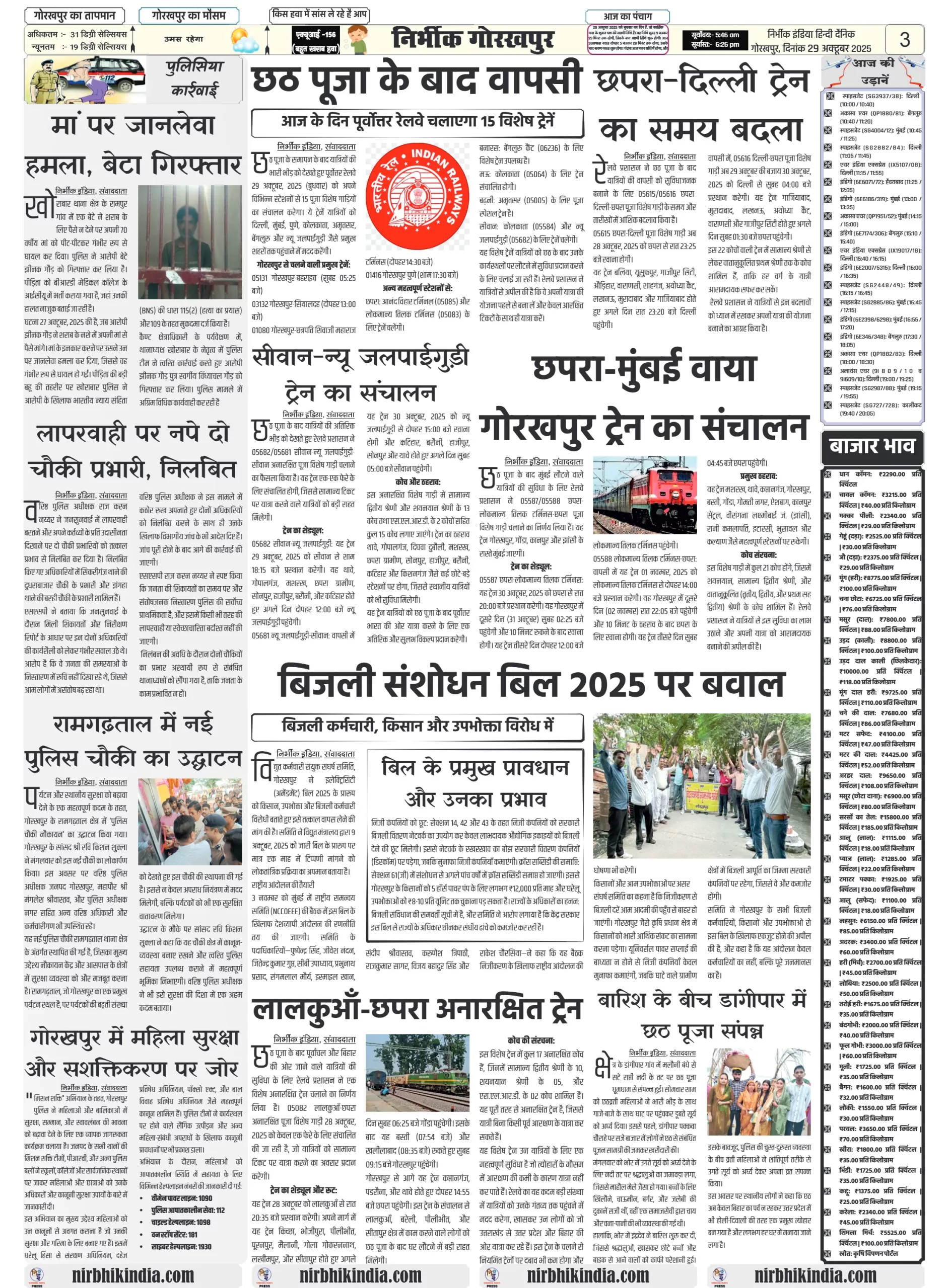 NIRBHIK INDIA GORAKHPUR NEWSPAPER 29 October 2025
